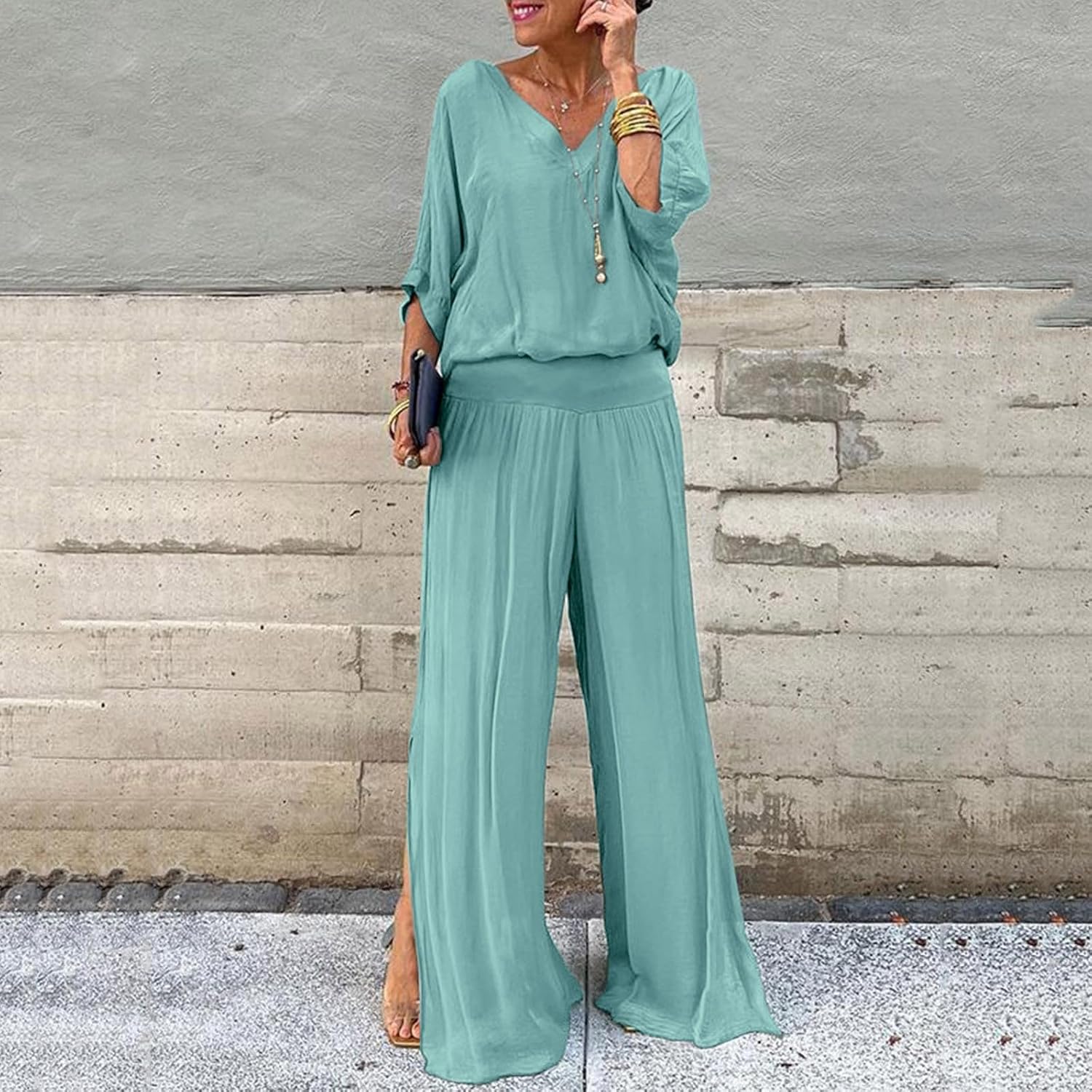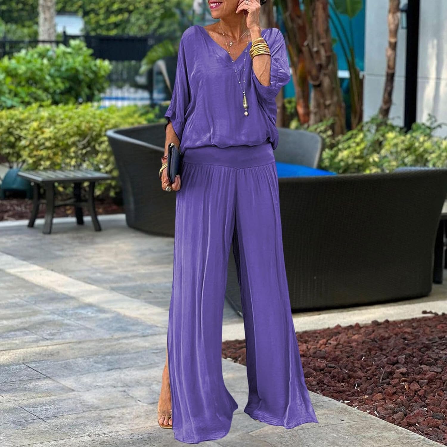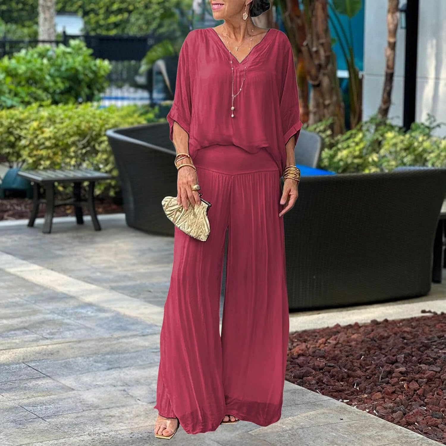 Cet ensemble en mousseline unie vous habille en un clin d'œil avec élégance. Léger, fluide et agréable à porter, il est parfait pour toutes celles qui aiment allier confort et style au quotidien.
