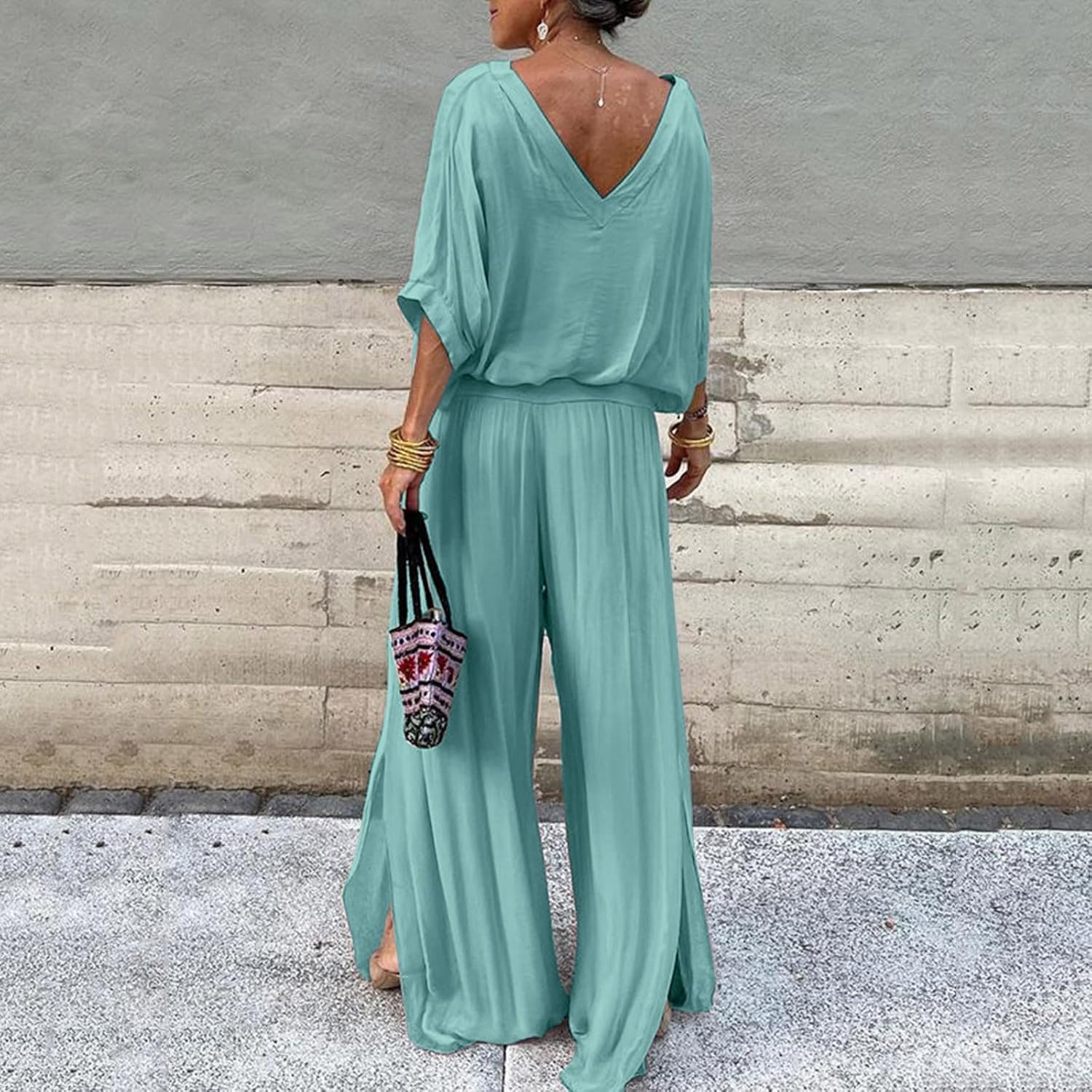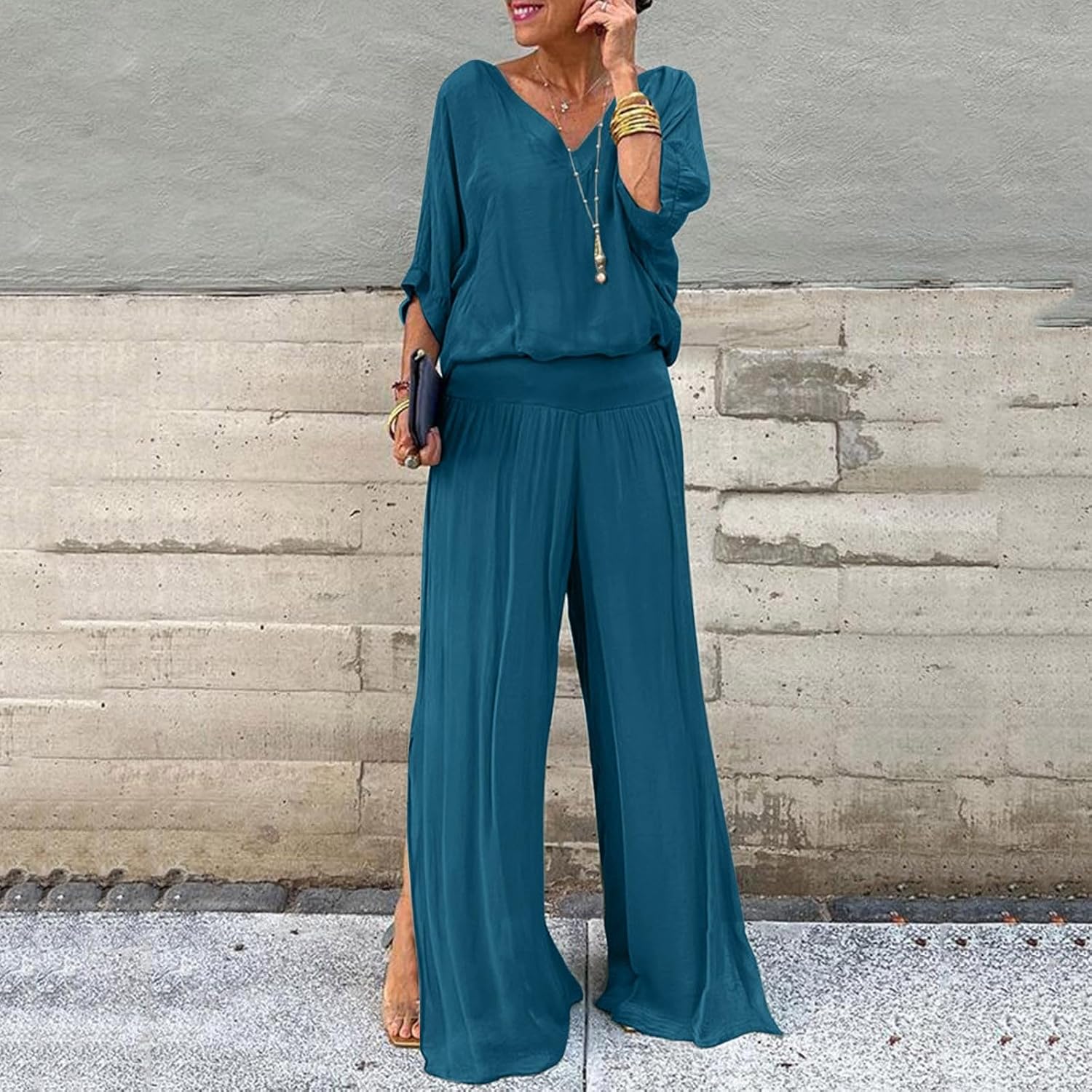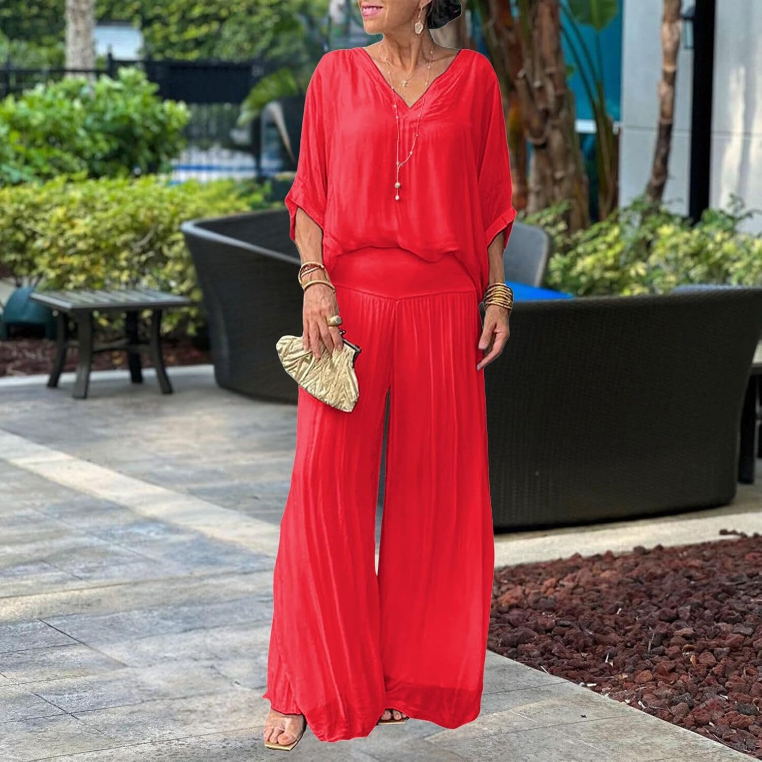 Cet ensemble en mousseline unie vous habille en un clin d'œil avec élégance. Léger, fluide et agréable à porter, il est parfait pour toutes celles qui aiment allier confort et style au quotidien.